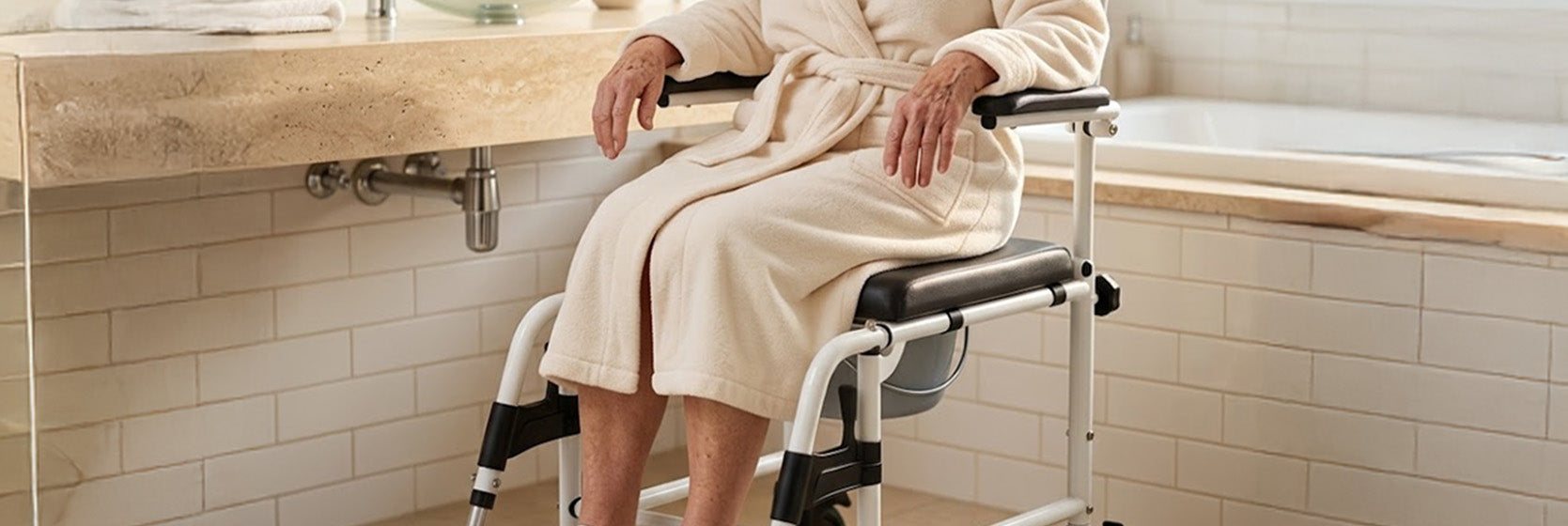 Toilettenrollstuhl für mehr Sicherheit im Alltag Ein Toilettenrollstuhl erleichtert Menschen mit eingeschränkter...